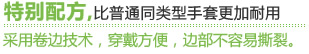 采用優(yōu)異天然乳膠,特別配方,比普通同類型手套更加耐用。